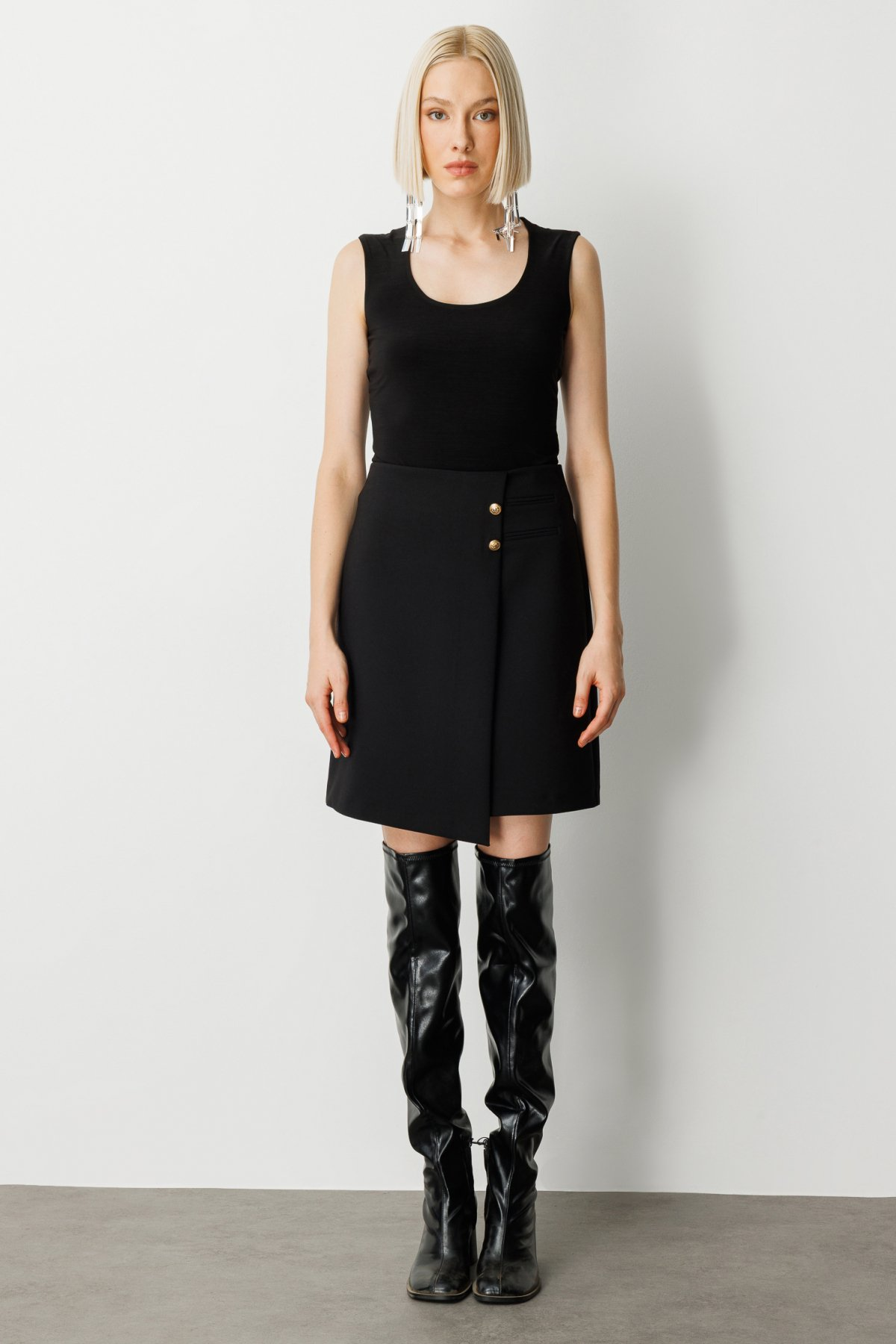 Ürün Kalıbı: Regular Ürün Kalınlığı: Orta Ürün Boyu: 50 Kumaş İçeriği: %68 Polyester %25 Viskon %7 Elastan Kumaş Tipi: Dokuma Astar Durumu: Astarsız Kapama Şekli: Fermuarlı Ürün Sezonu: 2026 Kış Manken Ölçüleri: 1.76 cm 84/61/89 Beden: 36
