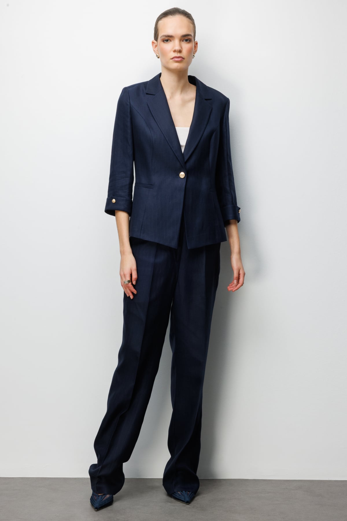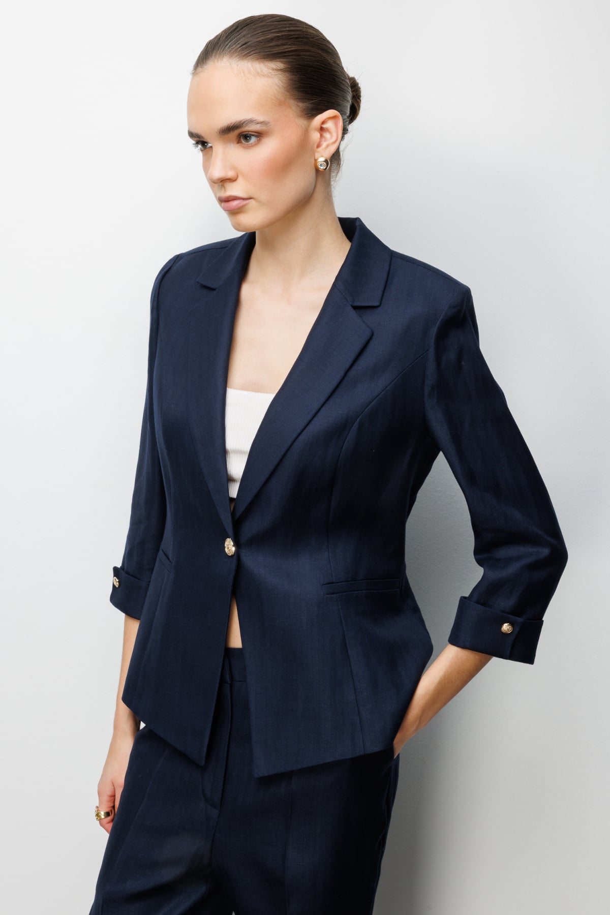 Ürün Kalıbı: Regular Ürün Kalınlığı: İnce Ürün Boyu: 60 Kumaş İçeriği: %100 Polyester Kumaş Tipi: Polyester Astar Durumu: Astarsız Yaka Tipi: Ceket Yaka Kol Tipi: Vatkalı Kol Boyu: Truvakar Kol Kapama Şekli: Düğmeli Cep: Fleto Cep Ürün Sezonu: 2026 Yaz Manken Ölçüleri: 1.76 cm 84/61/89 - Manken en küçük bedeni giymektedir.