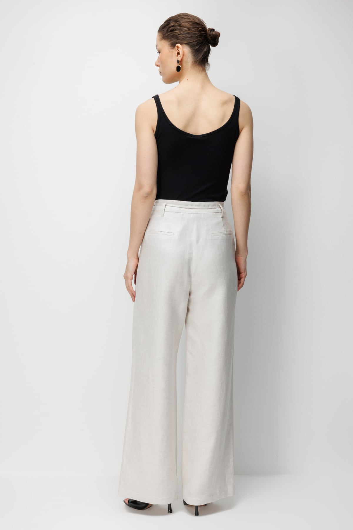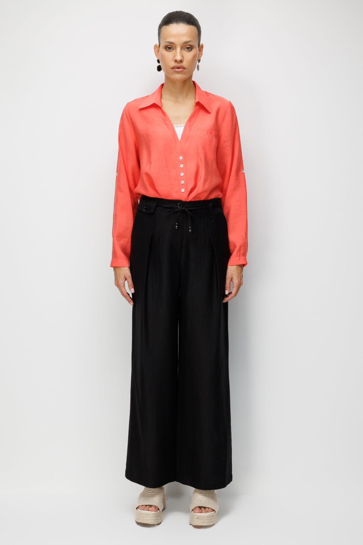 Ürün Kalıbı: Regular Ürün Kalınlığı: İnce Ürün Boyu: 110 Kumaş İçeriği: %100 Polyester Kumaş Tipi: Dokuma Astar Durumu: Astarsız Bel: Yüksek Bel Paça Tipi: Bol Paça Kemer/Kuşak Durumu: Bağcıklı Kapama Şekli: Fermuarlı Cep: Yan Cep Ürün Sezonu: 2026 Yaz Manken Ölçüleri: 1.76 cm 84/61/89 - Manken en küçük bedeni giymektedir.