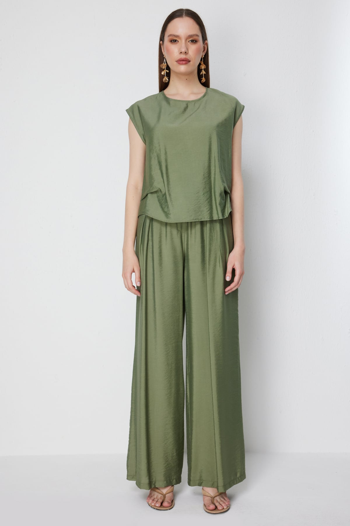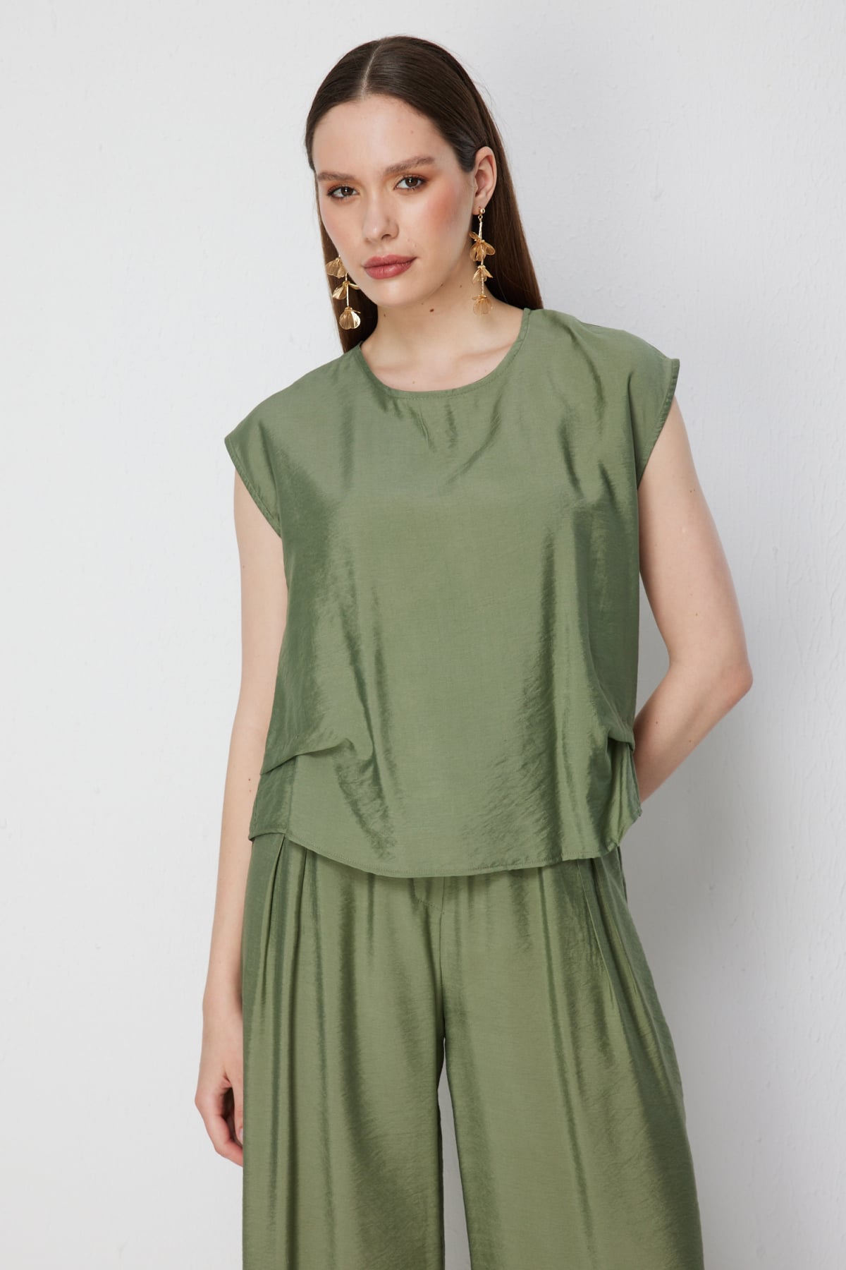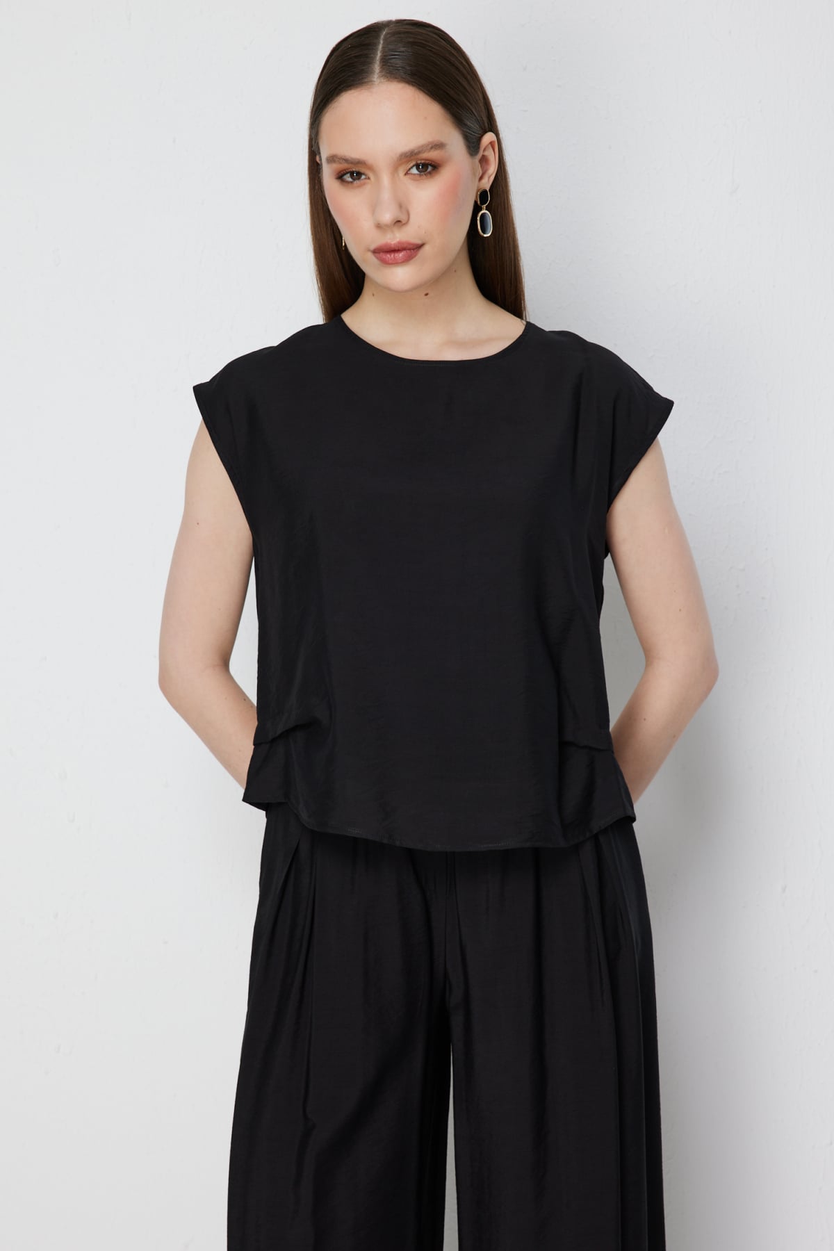 Ürün Kalıbı: Regular Ürün Kalınlığı: İnce Ürün Boyu: 50 Kumaş İçeriği: %15 Naylon %85 Rayon Kumaş Tipi: Dokuma Astar Durumu: Astarsız Yaka Tipi: Sıfır Yaka Kol Tipi: Düşük Kol Kol Boyu: Kısa Ürün Sezonu: 2026 Yaz Manken Ölçüleri: 1.76 cm 84/61/89 - Manken en küçük bedeni giymektedir.