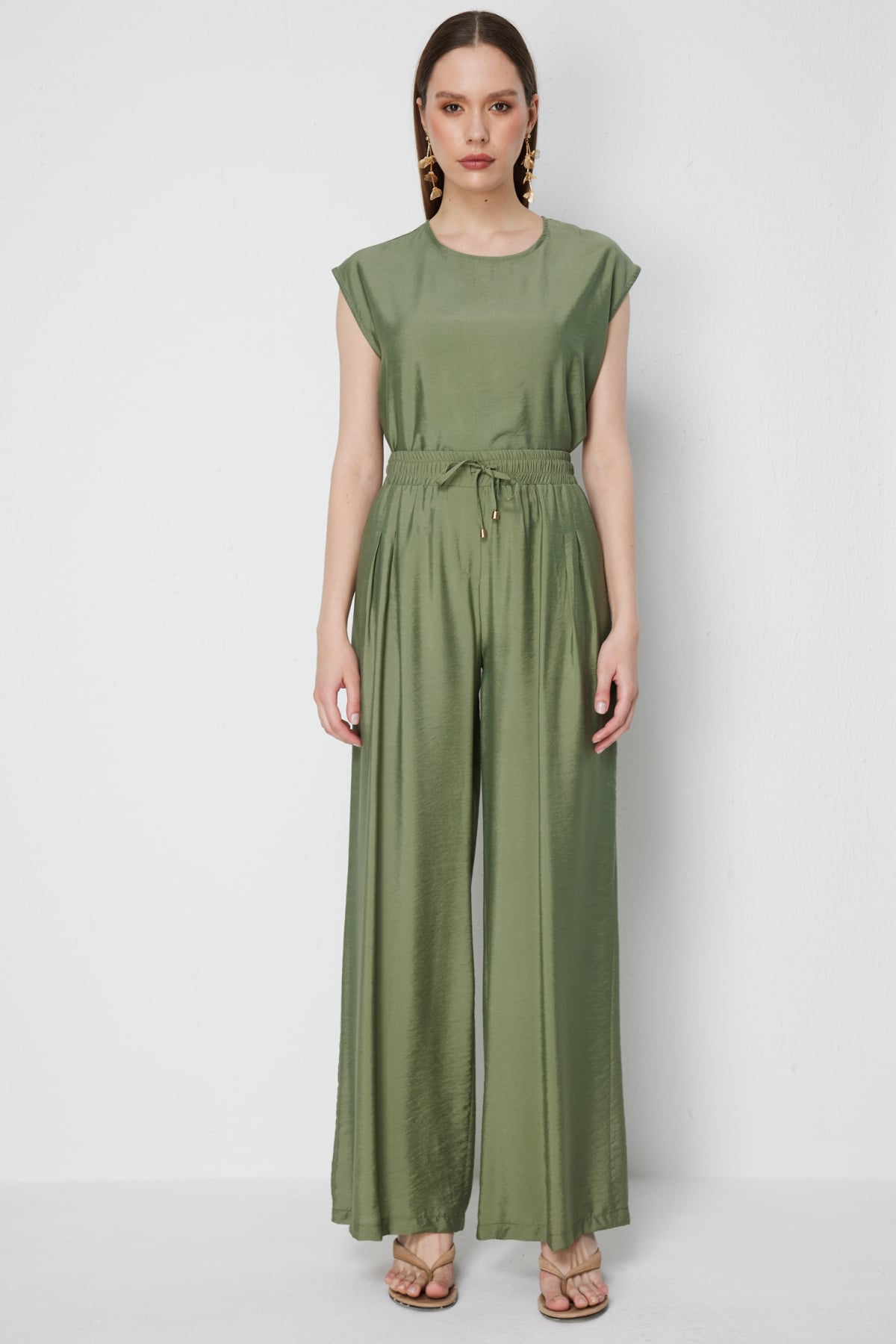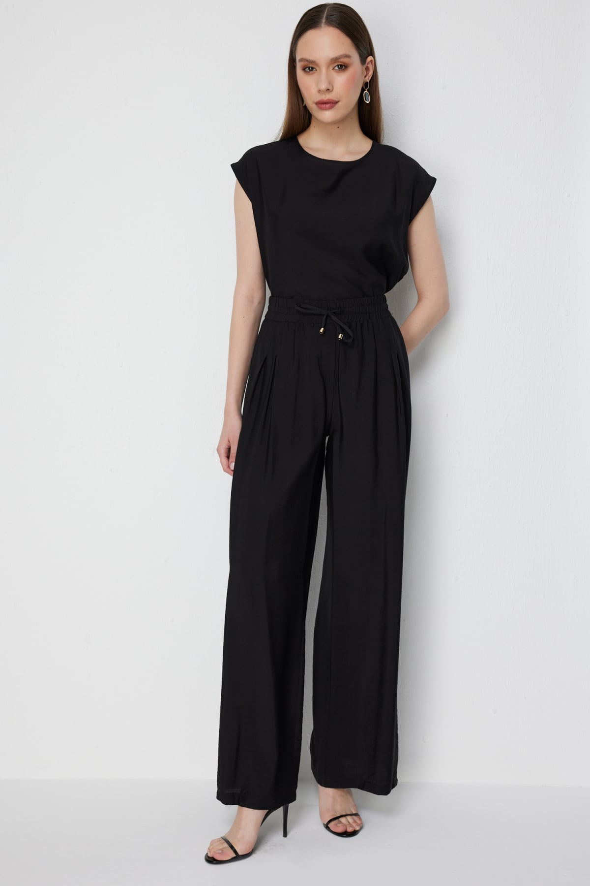 Ürün Kalıbı: Regular Ürün Kalınlığı: İnce Ürün Boyu: 110 Kumaş İçeriği: %15 Naylon %85 Rayon Kumaş Tipi: Dokuma Astar Durumu: Astarsız Bel: Lastikli Paça Tipi: Bol Paça Cep: Yan Cep Ürün Sezonu: 2026 Yaz Manken Ölçüleri: 1.76 cm 84/61/89 - Manken en küçük bedeni giymektedir.
